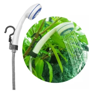 – La ducha portátil al aire libre con batería y carga USB es útil en el campo o en los viajes, ya que es pequeña y portátil.
