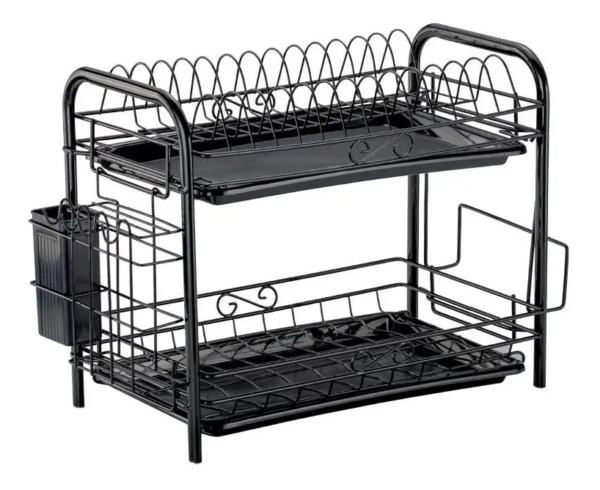 Secador de platos, hecho de hecho de fierro duradero con acabado negro de alta temperatura, ideal para platos, vasos y utensilios de cocina para escurrir el agua después de lavarse. El diseño de 2 pisos permite acomodar diferentes vasos y vajilla como platillos, tazas y mucho más, de forma muy cómoda.