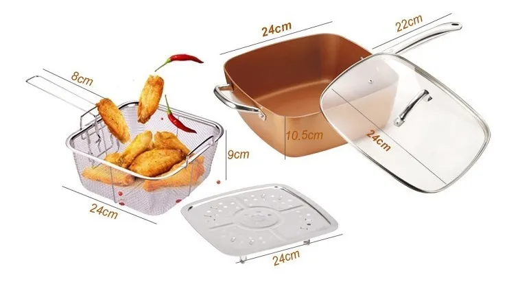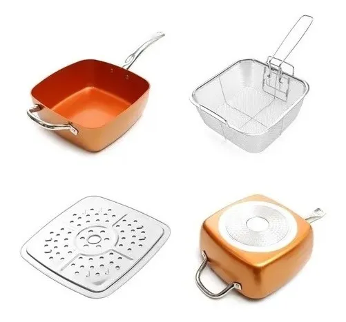 Para todas tus necesidades: una revolución en la cocina ha llegado no hay necesidad de sostener diferentes tipos de sartenes en la cocina, el sarten de cobre es la solución a tus necesidades de cocina, se puede utilizar en todos los tipos de estufas, gas, eléctrico e inducción, también está recubierto con cerámica de alta tecnología que permite el uso y la inserción del horno a altas temperaturas, la parte inferior de la olla está construida con tecnología de inducción, lo que permite ecualización. Al transferencia de calor en todo el Olla para una cocción adecuada.