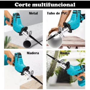 La sierra inalámbrica tipo sable es ideal para trabajos de corte en madera, metal y plástico, ofreciendo precisión y facilidad de uso en cualquier lugar.
